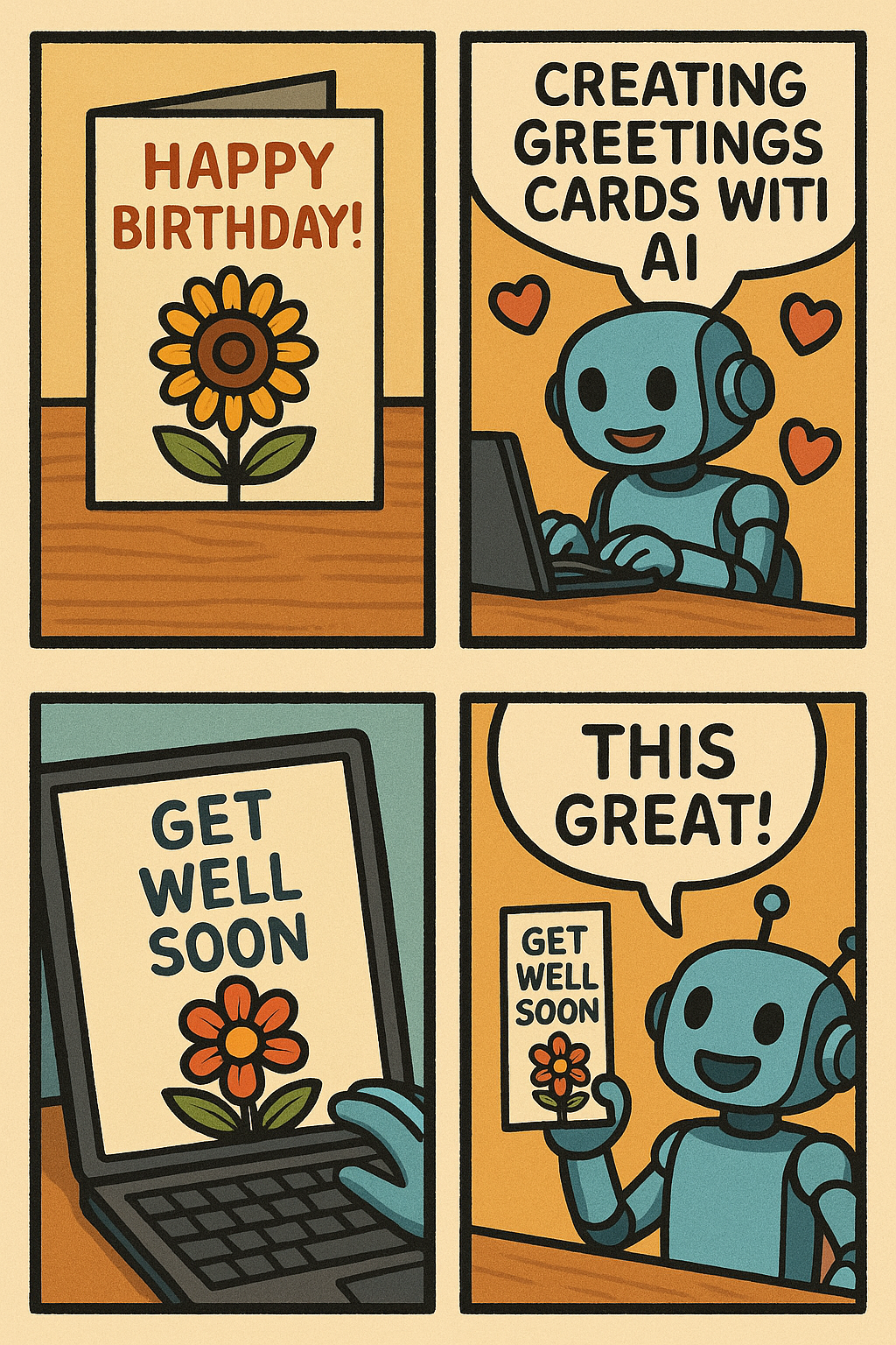 יצירת כרטיסים, קומיקסים וסיפורים עם בינה מלאכותית